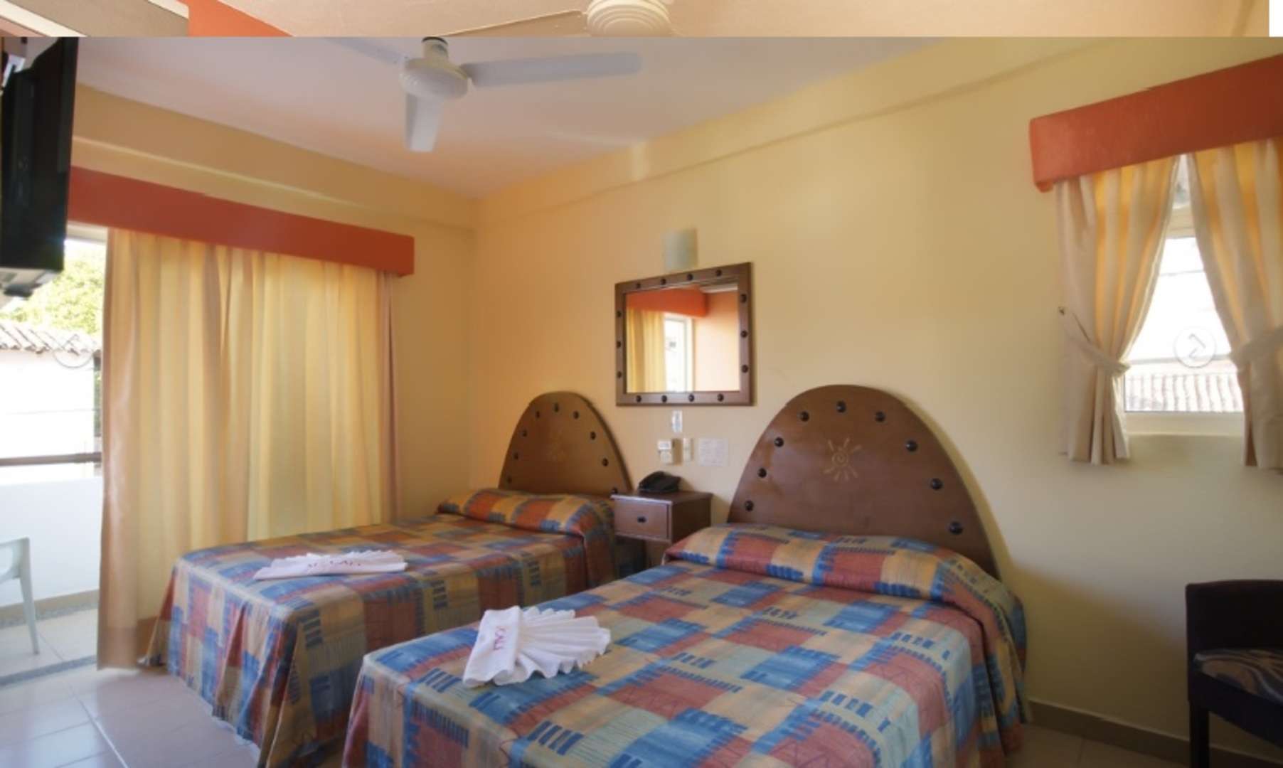 HABITACION CON BALCON: CUENTA CON 2 CAMAS MATRIMONIALES, EQUIPADA CON AIRE ACONDICIONADO TIPO MINISPLIT QUE LE PROPORCIONA UN AGRADABLE CLIMA SIN RUIDO, TELEVISION A COLOR CON 4O CANALES, TELEFONO, BAÑO PRIVADO, VENTILADOR DE TECHO. INTERNET INALAMBRICO.