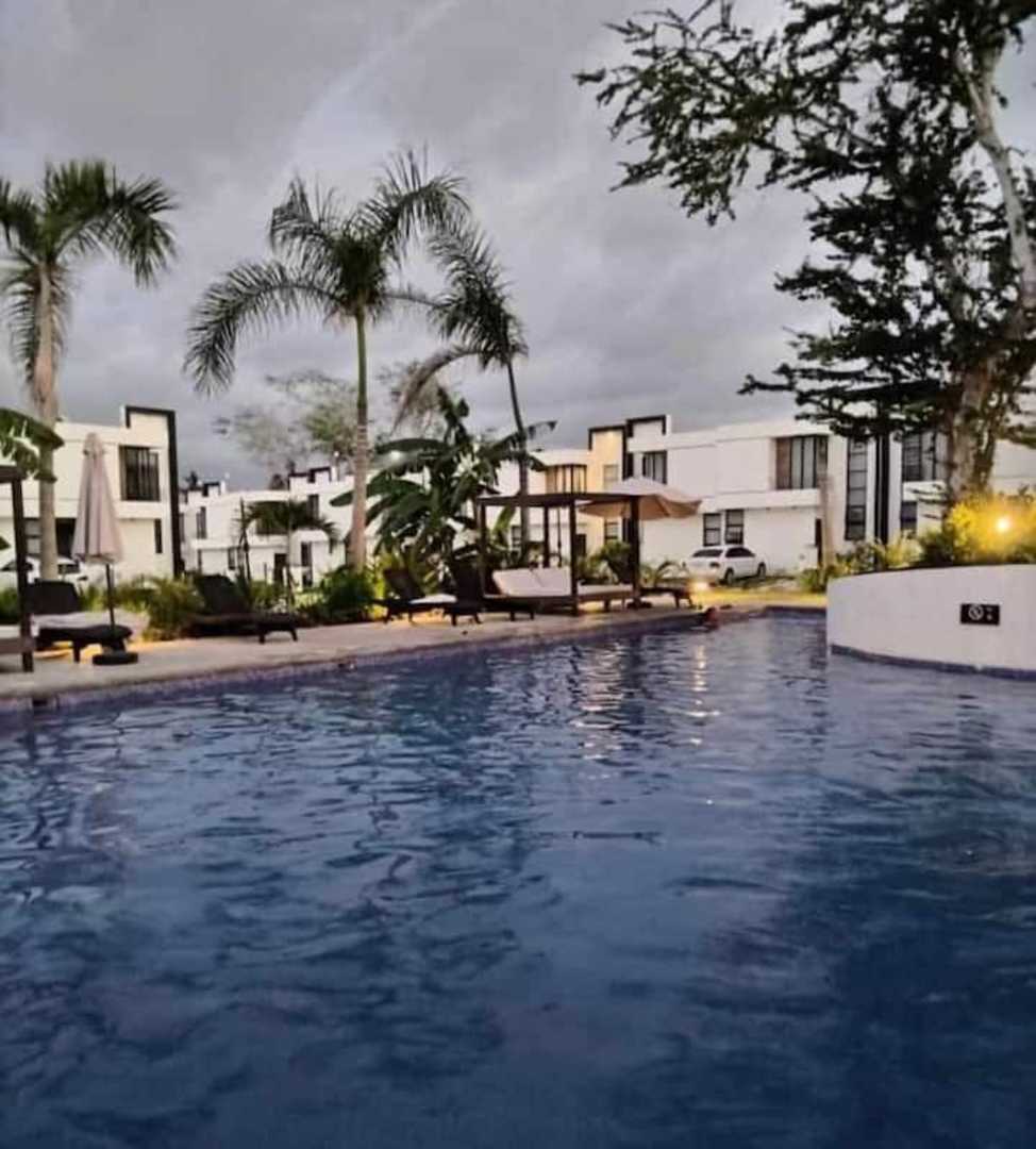 Casa en renta coto privado, 3 recamaras, 4 aires, 4 ventiladores inteligentes, clostes en las recamaras, cocina integral con parrilla gas, cochera 2 autos, patio de servicio area para lavadora techada, mantenimiento incluido, 2 casetas de seguridad vigilancia 24/7, áreas comunes con alberca, cancha de básquet pickle ball, juegos para niños .
