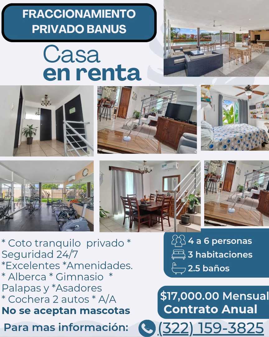 Casa en renta amueblada en Banús II $17,000 (incluye mantenimiento)