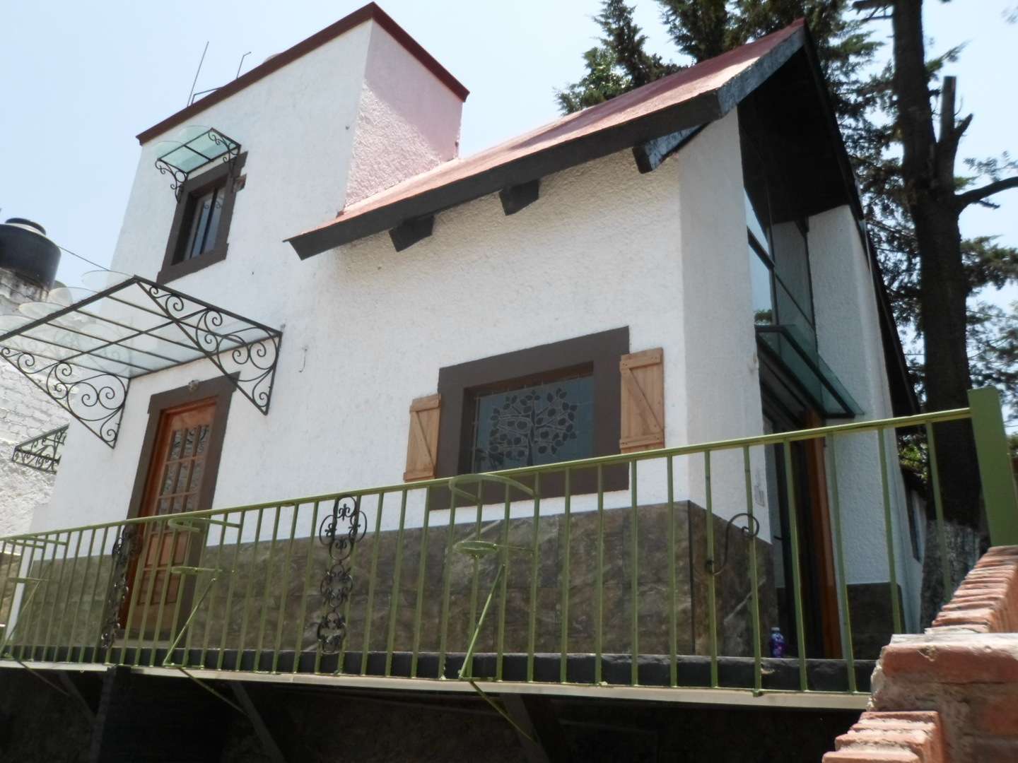 Hermoso chalet con acabados de madera, sala-comedor, cocina integral, dos recamaras, dos banos, cuarto de servicio, area de lavado, jardin con asador, cuatro closet, estacionamiento para cuatro autos, chimenea en sala y recamara principal, porton electrico.