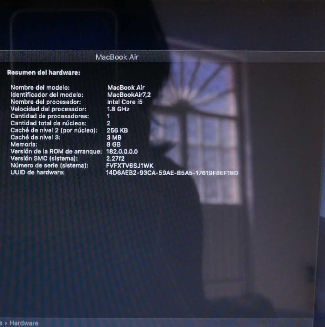 MacBookAeir7,2 Intel Core i5 1.8 GHz memoria 8GB Numero de serie FVFXTV6SJ1WK