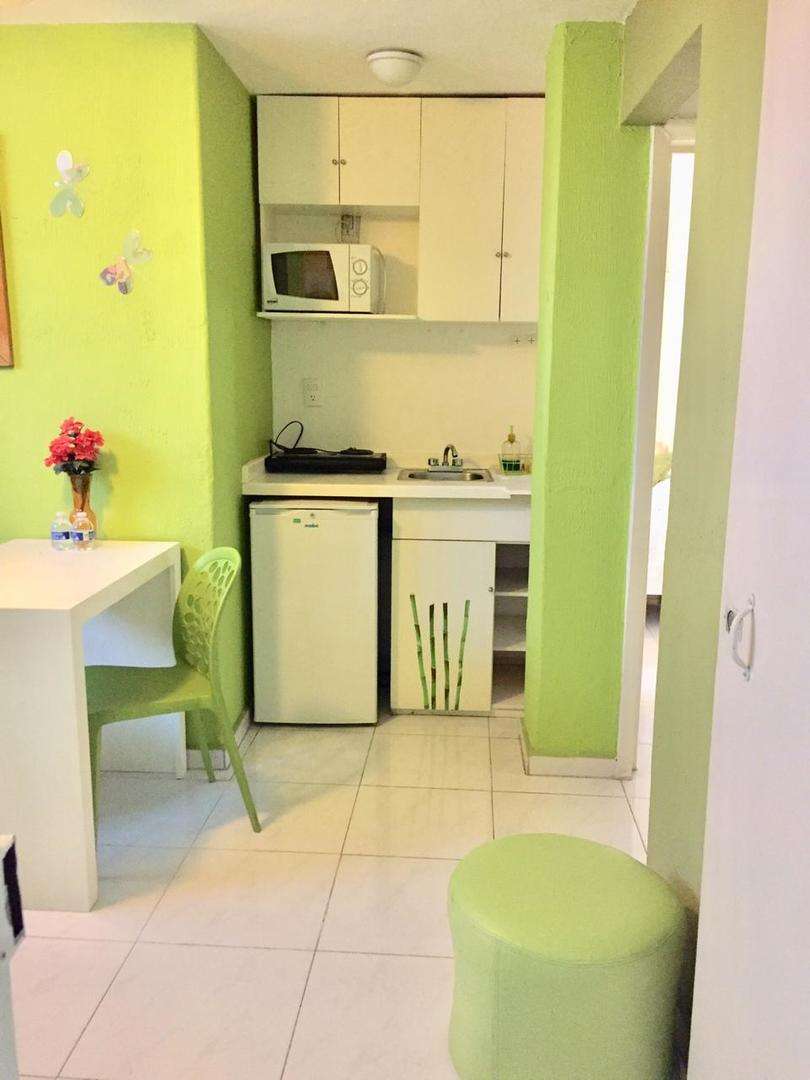 Todas nuestras habitaciones cuentan con los servicios basicos, limpieza 2 veces por semana ya incluida, cocineta, refrigerador, microondas, bano privado.