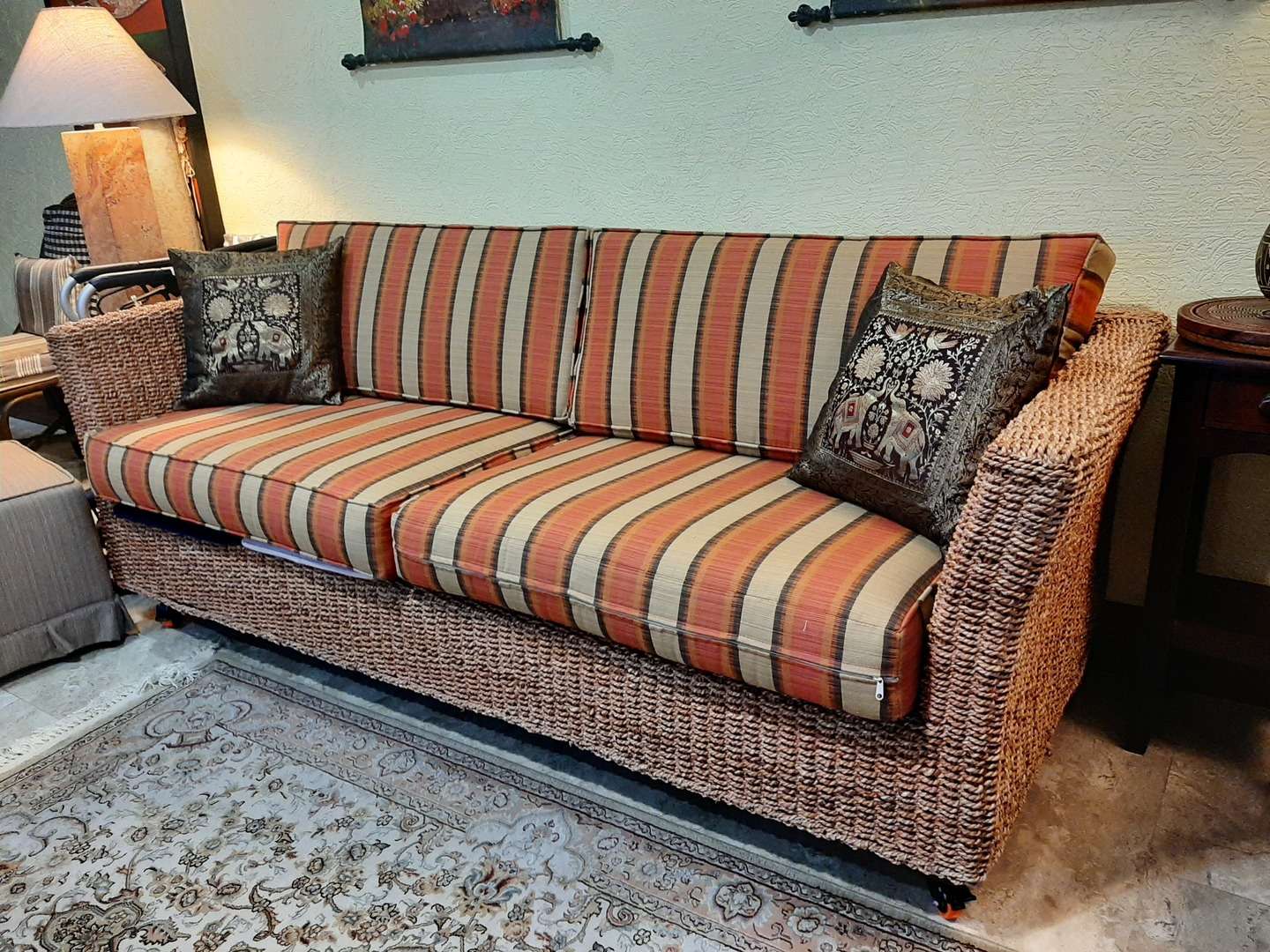 Vendo un juego de sala interior tejido con piel de rattan natural en $ 19,800 (60% menos del precio pagado, me urge venderlos), incluye 1 sofa y un sillón individual. Los cojines de asiento son en material de buena calidad y muy comodos. Estan en excelentes condiciones y pague $ 49,800, Si le interesa hacer una oferta razonable favor de enviar un correo a la Sra. Vazquez al correo: angelavf2@hotmail.com o al 322-221-3539