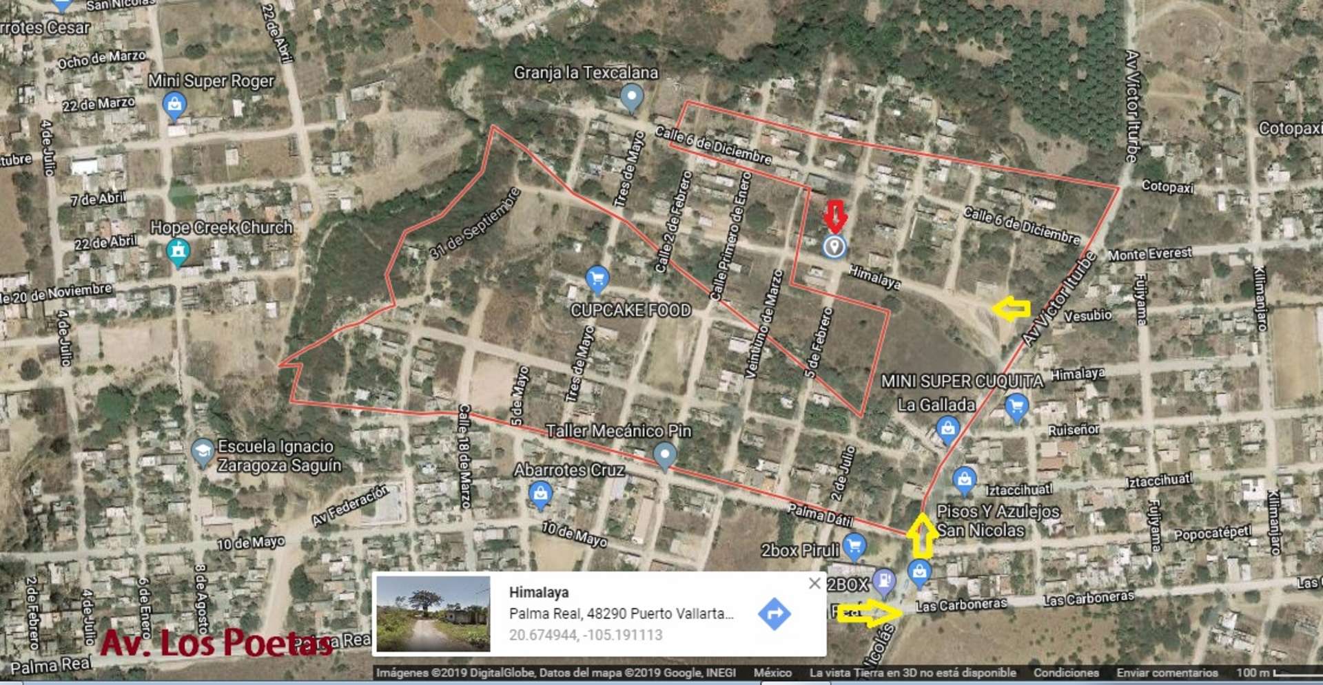 Ubicacion en google Maps calle Himalaya esquina 5 de Febrero, Col. Palma Real.
