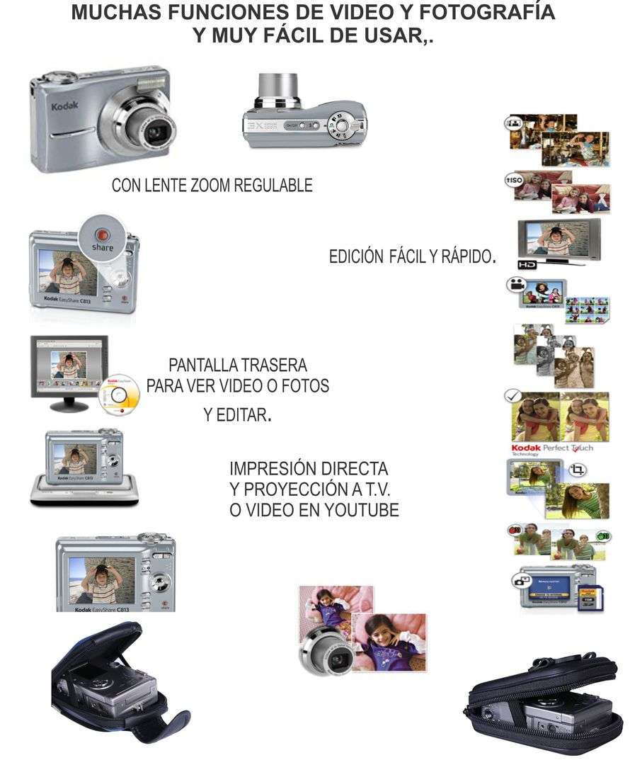 Copias de calidad excepcional con 8,2 MP.Capture magnificos colores brillantes gracias a la tecnologia de color KODAK ? Objetivo optico de 3 aumentos?El objetivo optico asferico KODAK AF 3X (equivalente a 35 mm: 36 mm a 108 mm)