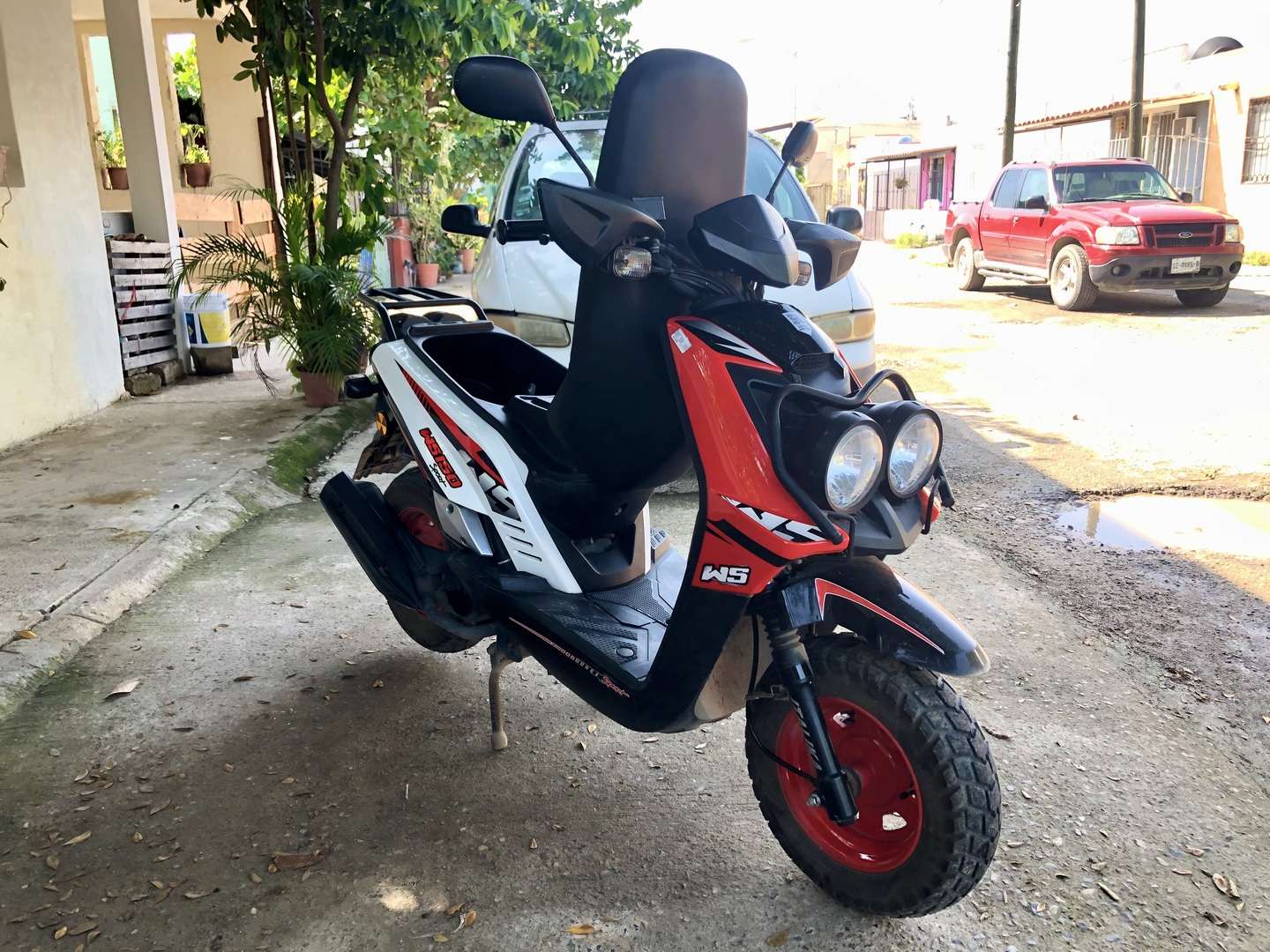 Para los amantes de la movilidad y el estilo, existe esta motoneta con gran estabilidad y un gran diseno, de aspecto rudo con sus llantas doble proposito y su gran diseno la WS 150 Sport es la mejor opcion.